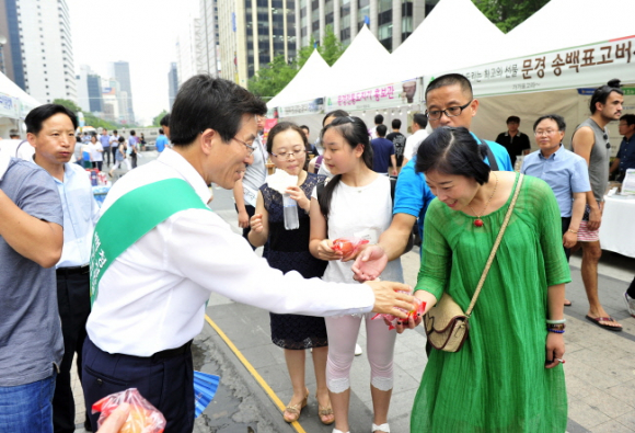 문경시가 7.11일 ~ 7.13일까지 서울청계광장에서 개최한 문경시 농특산물 직거래 한마당 행사로 농특산물 1억원을 판매하고 문경사과, 오미자, 약돌한우 등 지역의 대표농산물을 서울시민들에게 널리 알리며 성황리에 마쳤다.
