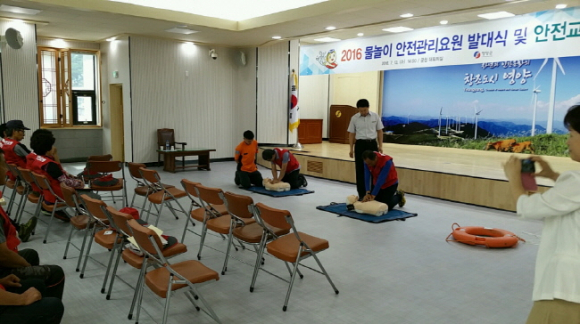 영양군(군수 권영택)에서는 본격적인 휴가철을 맞아 여름철 물놀이 피서객들의 안전을 위해 7월 13일(수) 14시 군청 대회의실에서 2016 물놀이 안전요원 발대식 및 응급처치에 대한 안전교육을 실시했다.