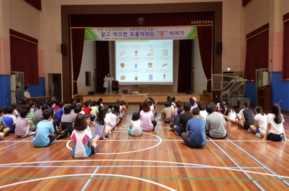 『초등학생 건강교실』은 김천시가 주최하고 김천시지역사회보장협의체 보건의료분과에서 주관한 행사로 초등학생을 대상으로 ‘알고 먹으면 도움이 되는 당이야기’라는 주제로 설탕 줄이기를 통한 비만 예방 및 건강식단에 대해 김천시보건소 영양사가 교육을 실시하했다. |  | | | ⓒ GBN 경북방송 | |