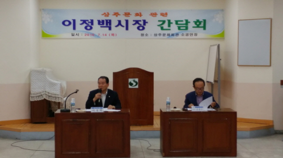 상주시(시장 이정백)에서는 7월 14일 오전 09시 30분 문화회관 4층 소공연장에서 문화원 이사,감사 및 문화관련 단체장 등 40여명이 참석한 가운데 이정백 시장 주재로 간담회를 가졌다.