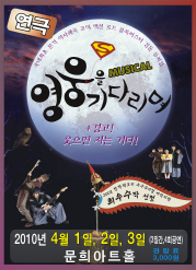뮤지컬 ‘영웅을 기다리며’는 2008년 창작팩토리 우수뮤지컬 제작지원에서 최우수 수상작으로 선정된 작품으로 지난 한해 동안 서울에서만 400회 이상의 공연을 했으며 전국 15개 도시에서 70여회의 순회공연을 통해 창작뮤지컬 마니아들 사이에서 큰 호응을 얻고 있는 작품이다.