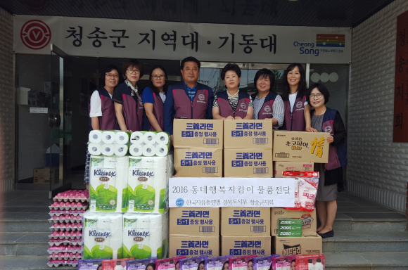 한국자유총연맹 청송군지회(회장 권오영)는 지난 20일 2016년 동네행복지킴이 사업 일환으로 관내 독거노인 및 다문화가정 10 가구를 방문해 각 가구마다 10만원 상당의 생필품을 전달했다.