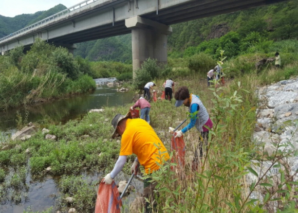 지난 7월 초 집중강우로 인해 불어난 강물이 빠지면서 하천 상류에서 떠내려 온 쓰레기가 관내 주요 하천변에 상당히 산재되어 있어 이를 수거하고자 자연정화활동을 실시했다.