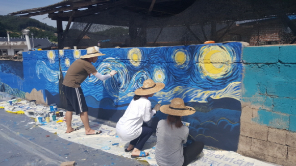 경북대학교 예술대학 학생회 여름 벽화 봉사활동 화산면 가상리 가래실 문화마을(별별미술마을)에서 4일간