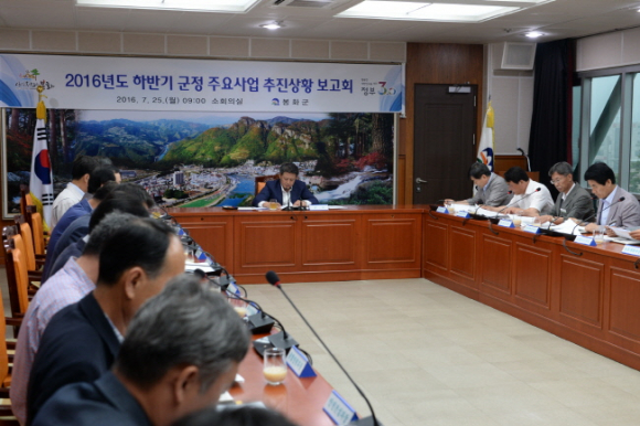 봉화군(군수 박노욱)은 25일(월) 오전 소회의실에서 2016년도 군정업무 상반기 추진실적과 하반기 추진계획을 보고하면서 소통을 통한 유기적인 협력의 자리를 가졌다.