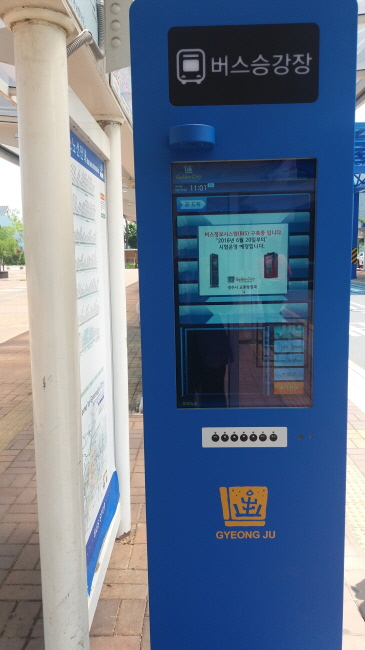 경주시 교통정보센터는 시 교통흐름을 실시간으로 파악, 제어할 수 있는 지능형교통체계(ITS)와 위성과의 교신으로 시 시내버스의 동선을 파악, 센터와 연계하여 각 승강장별로 단말기에 정보를 송출하여 이용객들에게 최적의 버스정보 서비스를 제공한다.