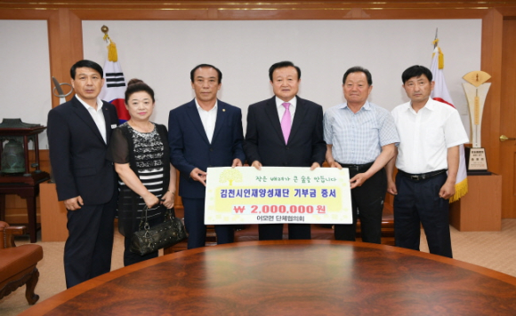 김천의 교육발전과 글로벌 인재육성을 위해 어모면 단체협의회에서 김천시인재양성재단(이사장 박보생)에 장학기금 2백만원을 기탁했다.