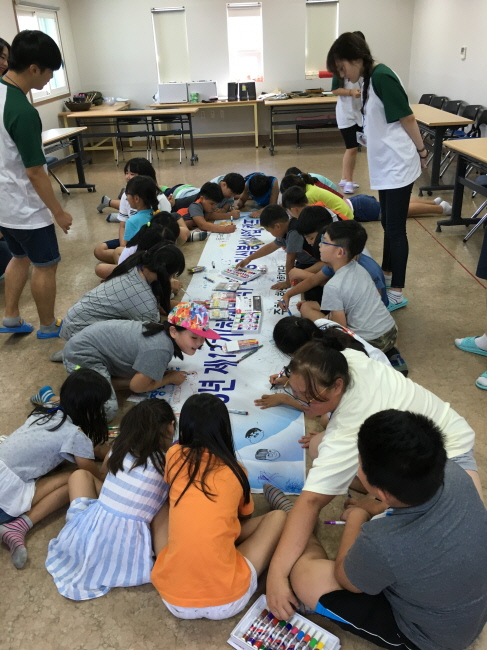 지식봉사 캠프는 동국대 경주캠퍼스 재학생 10여명이 참여하여 지난 26일부터 30일까지 성동지역안동센터 청소년 30여명을 대상으로 현수막꾸미기, 창의력 활동, 음식 만들기, 미니 운동회 등의 프로그램으로 진행됐다.