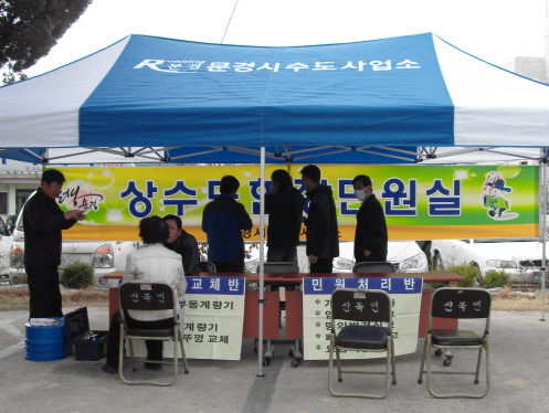 문경시수도사업소는 예년에 비하여 겨울추위가 심하여 상수도 관련 민원사항이 폭주되는 상태임을 감안해 3월 24일 상수도 현장민원실을 산북면사무소에 설치하여 상수도 및 마을상수도와 관련한 시민의 불편 사항과 민원을 현장에서 접수ㆍ처리코자 오전 10시부터 운영하여 각종 행정서비스를 제공한다고 밝혔다..