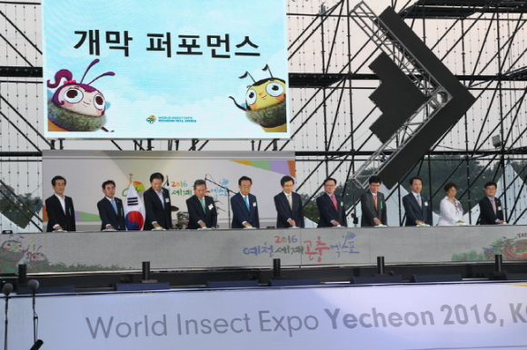 이날 약 4시간에 걸쳐 진행된 개막식에는 황교안 국무총리, 이동필 농림축산식품부장관, 이양호 농촌진흥청장, 신원섭 산림청장, 김관용 경상북도지사 등 중앙 및 지방정부 주요 초청 인사와 주한외교사절단 등 내외빈을 비롯해 약 1만 여명의 관람객들이 참여해 세계 최대 곤충 박람회인 2016예천세계곤충엑스포의 역사적인 시작을 함께 했다.