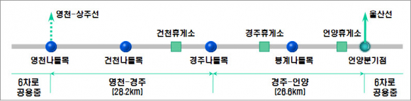 경부고속도로 영천~언양간(54.8km)구간 확장공사(4차로→6차로)는 타당성 재조사 실시 중에 있다. 완공 시 영천~상주간고속도로, 대구~포항간고속도로가 경부고속도로와 연계 되어 물류소통에 크게 기여 할 것으로 기대된다.