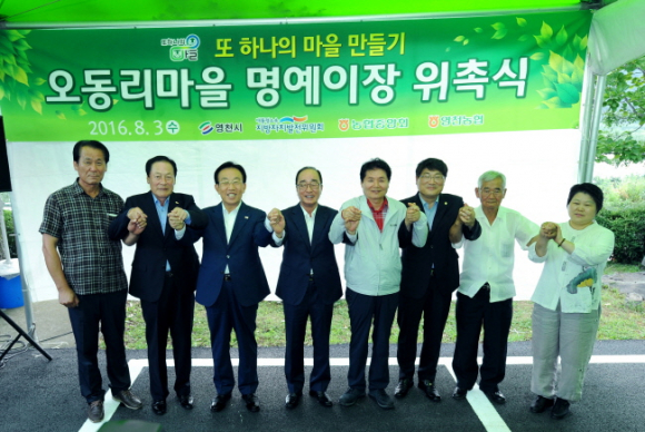 김영석 영천시장은 환영사에서 “대통령소속 지방자치발전위원회 심대평위원장님과 관계자 여러분의 영천시 방문을 환영한다며, 우리시 오동리 마을 명예이장으로 응해 주신 심대평위원장님께 깊은 감사를 드리며, 앞으로 지방자치발전위원회와 오동마을이 서로 교류하고 발전해 나가기를 기원한다”고 말했다.