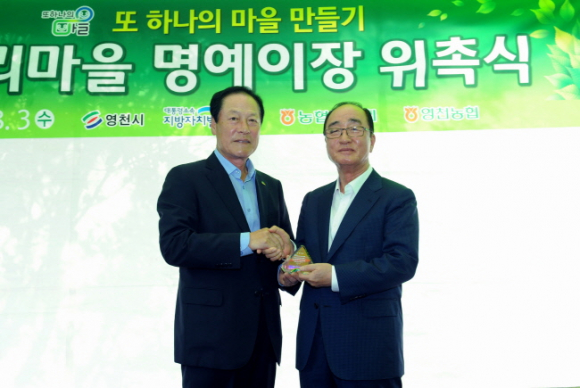 영천시(시장 김영석)는 지난 3일 화북면 오동리 마을회관에서 김관용경북도지사, 모석종 영천시의회 부의장, 한혜련․김수용 도의원 및 농협관계자 등 내외빈과 주민 150여명이 한자리에 모여 지방자치발전위원회 심대평위원장을 오동리 마을 명예이장으로 위촉했다’고 밝혔다. |  | | | ⓒ GBN 경북방송 | |
