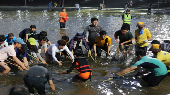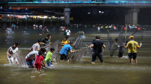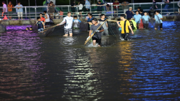 야간 은어반두잡이에 축제장이 북적인다