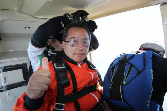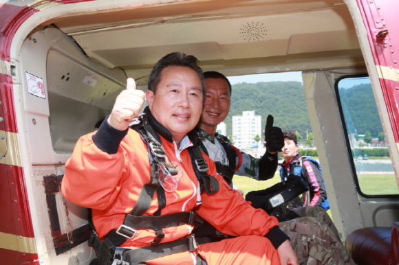 이현준 예천군수 전국 스카이다이빙 페스티벌 ‘텐덤’강하 도전