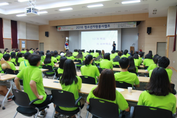 여름방학을 맞아 청소년의 자원봉사에 대한 자발적 참여분위기를 확산하고 SDGs(지속가능개발목표)에 대한 인식을 제고하고자, 청송군이 주최하고 청송군종합자원봉사센터가 주관하는『2016 청소년 자원봉사 캠프』가 8월 4일부터 8월 5일 동안 산림조합중앙회 임업인종합연수원에서 실시되었다.