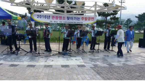 이날 참석한 회원들은 30여명으로 트롯, 발라드 등 여러 장르의 음악을 연주하였으며, 2016. 8. 14(일)에도 좀 더 많은 회원들이 장사해수욕장을 방문해 좋은 공연을 선보이겠다고 밝혔다. |