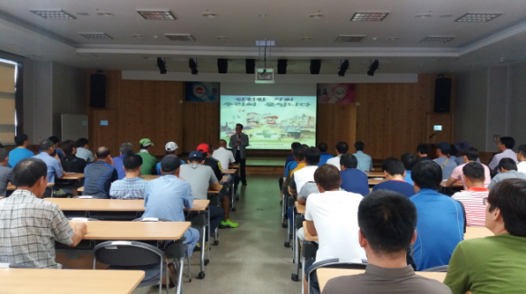 김천시(시장 박보생)는 2016년 8월 16일 김천시 근로자종합복지관 강당에서 김천시 청소차량 운전원 및 환경미화원 90명을 대상으로 복무 및 안전사고 예방교육을 실시했다.