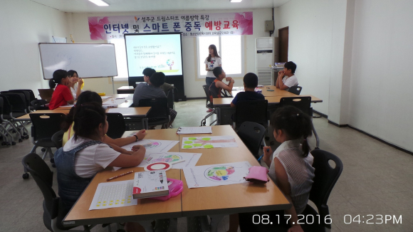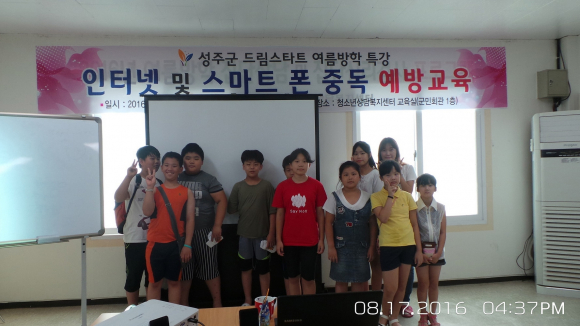 성주군 드림스타트는 여름방학을 맞이하여 청소년상담복지센터 교육실에서 고학년 아동 15명이 참여하는 『인터넷 및 스마트폰 중독 예방교육』을 2회 실시했다.