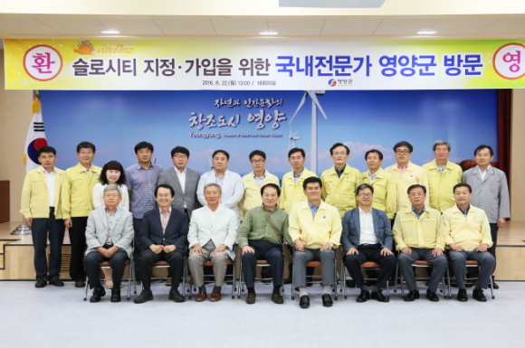 2016년 8월 22(월)부터 23(화)일까지 2일간 국제슬로시티 한국본부 손대현 이사장 외 10명으로 구성된 슬로시티 국내전문가 실사단이 영양군(군수 권영택)을 방문해 6개 지역을 중심으로 슬로시티 지역으로서의 타당성 분석 및 컨설팅을 위한 실사와 평가를 실시했다.