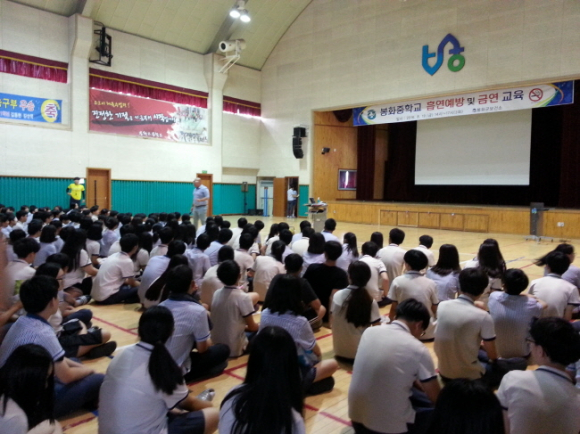 봉화군 보건소에서는 “미래의 꿈나무들을 위한 깨끗한 환경 선물하기 〃라는 주제로 8월 18일부터 10월 24일까지 관내 초·중·고등학교 15개소 학생 및 교직원 1,610명을 대상으로 순회 금연 교육을 실시하고 있다.