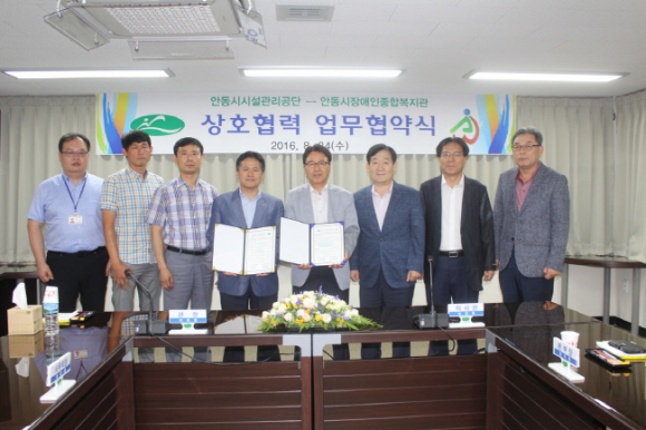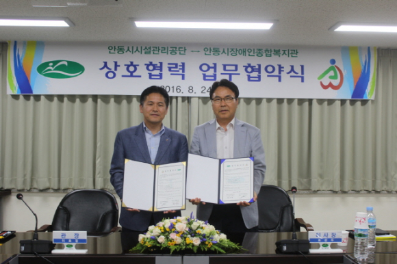 안동시 시설관리공단과 안동시 장애인종합복지관은 24일 시설관리공단 회의실에서 장애인의 삶의 질 향상을 위한 업무협약(MOU)을 체결했다.