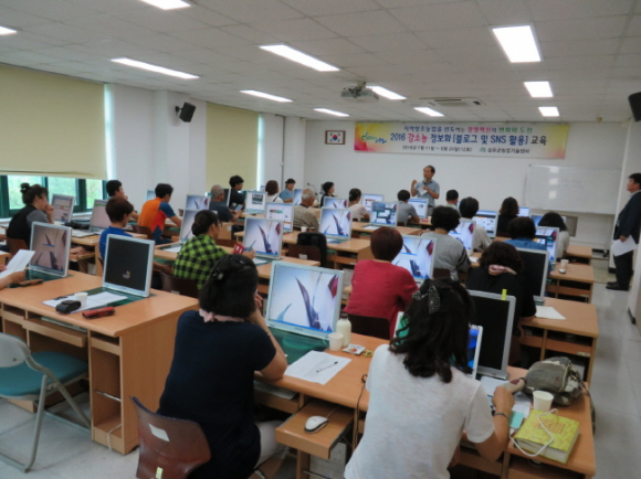블로그 활용교육은 강소농가 30명을 대상으로 지난 7월 4일 첫 교육을 시작하여 8월 29일까지 12회 과정으로 진행되고 있으며 PC와 스마트폰을 활용한 블로그와 SNS 마케팅 교육을 중점적으로 추진 했다.