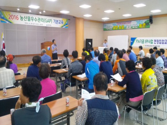 GAP(Good Agricultural Practices)는 농산물의 안전성을 확보하고 농업환경을 보전하기 위하여 농산물과 농업환경에 잔류할 수 있는 각종 위해요소를 안전하게 관리하는 제도이며, 이를 인증을 받기 위해서는 GAP 기본교육 2시간 이상을 반드시 이수해야 한다. 한 번 교육을 받으면 2년 동안 유효하므로 기존 GAP 인증 농가도 2년에 1회 이상 주기적으로 교육을 받아야 한다.