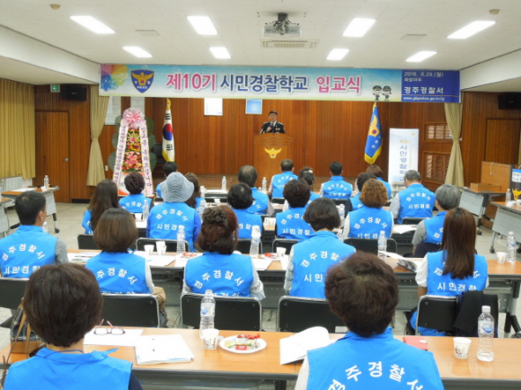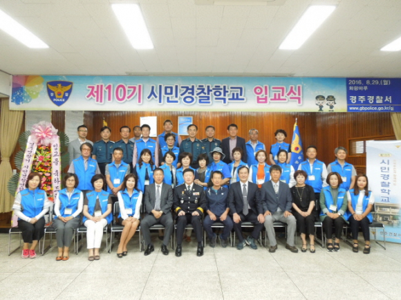 경주경찰서(서장 정흥남)는 지난 29(월) 경주경찰서 화랑마루에서 지역주민과 함께하는 ‘16년도 제10기 시민경찰학교 입교식을 개최했다.