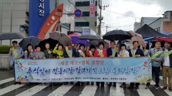 재경향우회 대구·경북지회에서는 추석명절을 앞둔 9월2일 80여명의 회원들이 상주시 중앙시장에서 소비촉진 캠페인과 함께 전통시장 장보기 행사를 가졌다. 이날 중앙시장 상인회에서는 비가 오는 가운데도 장보기 행사에 나선 회원들의 불편함을 덜어주기 위해 우산을 받쳐주고 짐을 차량까지 운반해 주는 등 재래시장 알리기와 친절 베풀기에 혼신의 노력을 다했다.