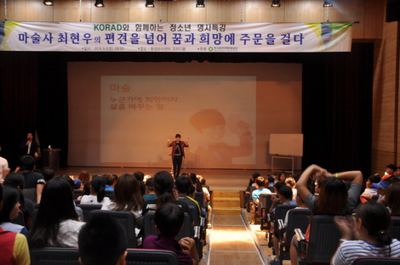 이날 최현우 마술사는 ‘편견을 넘어 꿈과 희망에 주문을 걸다’를 주제로 생각의 틀을 깨는 명강의로 어린이들의 감성을 자극했다.