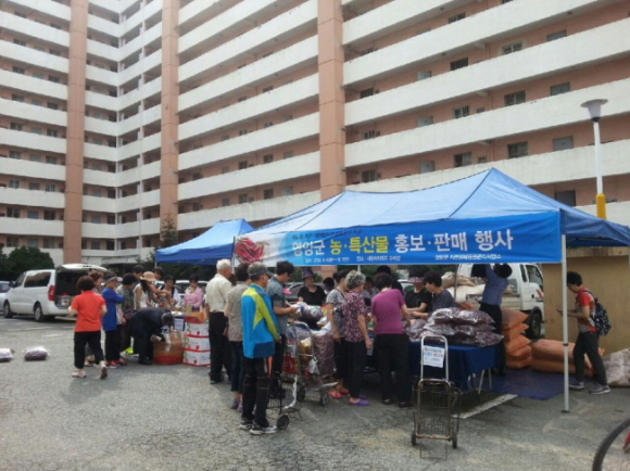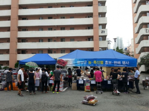 이틀 동안 실시한 농산물 판촉행사에 영양의 대표 농산물인 건고추를 비롯한 참깨, 꿀, 고사리, 사과 등 다양한 품목으로 재배농가와 사업소 직원 6명이 참여해 수안동 새동래아파트 외 8개 단지의 5,000명의 시민을 대상으로 농산물 직거래 장터를 운영하여 건고추 1,000근 등 약 1,200만원 상당의 농·특산물을 판매하는 성과를 올렸다.