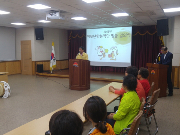 이정하 어모면장은 “고장의 명예를 위해 힘을 쏟는 농악단 회원 여러분의 노고에감사 드리고 결의식이 면민의 화합과 어모면의 발전을 촉진하는 계기가되길 바란다“고 했다.