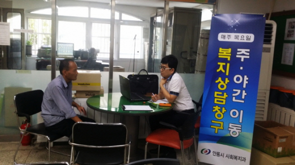 안동시(시장 권영세)는 복지사각지대를 해소하고 찾아가는 복지서비스를 구현하고자 지난 8월부터 2주공아파트 관리사무소에서 매주 목요일마다 주․야간 이동복지상담 창구를 운영 중이다. 8월 4일부터 9월 2일까지 5주간 주․야간이동복지상담 창구를 방문한 이용객은 105명으로 매주 평균 21명으로 좋은 반응을 얻고 있다. 상담유형별로 창구방문상담은 67%, 가정방문상담은 24%, 집단방문상담은 9%를 차지하며, 상담의 69%는 현장에서 즉석으로 해결하고 있고, 31% 정도는 관련 부서에 연계해 해결하고 있다. 주․야간이동복지상담 창구는 운영한지 한 달 만에 입소문을 타고 평소 상담을 받지 못 했던 분들이 주로 이용하게 되었으며, “편하다, 세상이 참 좋아졌다, 찾아와서 해주니 고맙다, 밤늦게까지 고생이 많다” 등 다양한 이용후기를 들려주었다. |  | | | ⓒ GBN 경북방송 | |