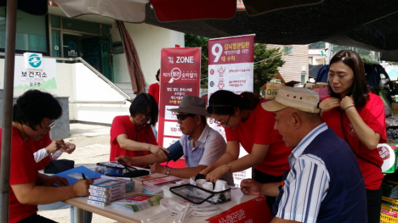 시장 상인들을 대상으로 레드써클 존을 설치하고 혈압,혈당,콜레스테롤 등 건강상태를 체크하고 건강생활실천을 위한 금연, 영양상담등 우울검사도 함께 실시해 금연캠페인, 국가암조기검진 독려, 나트륨줄이기 캠페인등 다양한 건강캠페인도 함께 홍보했다.