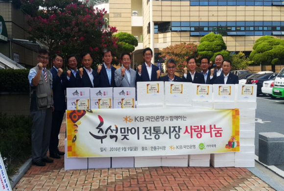 이에 권영세 안동시장은 “추석을 맞이하여 전통시장의 물품을 구매하여 전통시장 활성화와 소외계층을 위해 이번 행사를 주관한 국민은행에 감사드리고 안동시에서도 어려운 이웃을 보살피는데 최선을 다하겠다.”고 고마움을 전했다. |