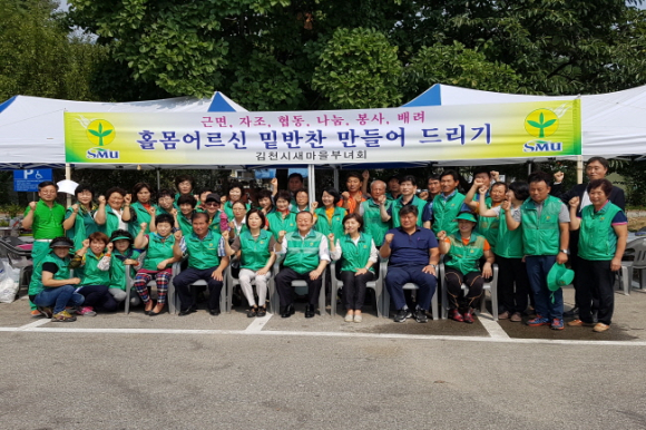 김천시 새마을부녀회(회장 박종말)는 9월 9일 새로 이전한 새마을회관 주차장에서 읍면동 부녀회장 및 협의회장들이 참여한 가운데 추석맞이 홀몸어르신 밑반찬 만들어드리기 행사를 진행했다.