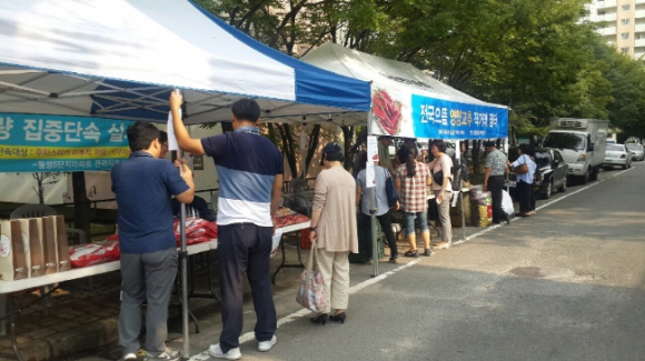 영양군 지역개발과(과장 임정재)는 민족 고유의 명절 추석을 몇일 앞둔 수확의 계절 가을을 맞아 영양군 농산물의 판로를 개척하고자 9월9일(금) 대구광역시 달서구 달성주공5단지에서 농특산물 직판행사를 실시하였다. 이번 행사는 지역개발과 직원, 석보면 답곡리 이○○씨 농가 및 영양고추유통공사에서 참여하여 농특산물의 홍보 및 직판행사를 추진했다.