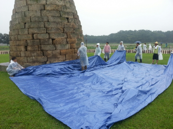 추석연휴를 반납하고, 경주지역 문화재 피해 현장에서 기와정비 및 우장막 설치 작업 등 제16호 태풍 말라카스로 인한 2차 피해를 막기 위해 구슬땀을 흘렸다. 문화재피해 응급조치 팀은 4개조로 나누어져 분야별 전문가가 참여한 가운데 진행되고 있으며 태풍이 우리나라에 본격적으로 영향을 미치는 16일 밤 이전에 모든 피해 문화재의 응급복구를 마무리할 예정이다.