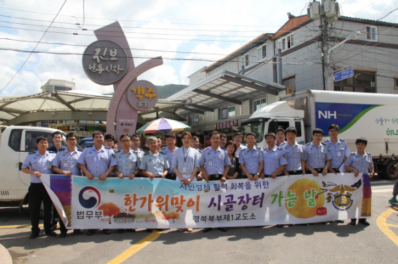 경북북부제1교도소(소장 정병헌) 직원들은 9월 13일 우리의 대명절 한가위를 맞아 정부 3.0 사업의 일환으로 시골 5일장의 정취를 향유하고 지역상권 살리기에 동참하고자 ‘시골장터 가는 날’행사를 시행했다.
