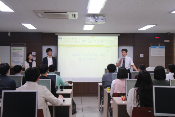 이 날 ㈜테크노스마일 인재개발부 방문단은 동국대 경주캠퍼스 원효관에서 진행된 K-MOVE스쿨 일본취업 장기연수과정 3기 연수 교육을 참관하고 3기생 21명과 일본 취업에 대한 면담을 가졌다.