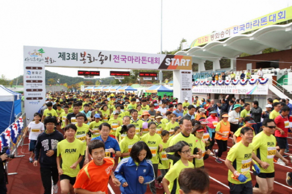 대한민국 대표 마라톤 대회로 도약 중인「제4회 봉화송이전국마라톤대회」가 10월 2일(일) 오전 9시 30분 봉화공설운동장 및 지방도 915호선(물야방면) 일원에서 개최된다.