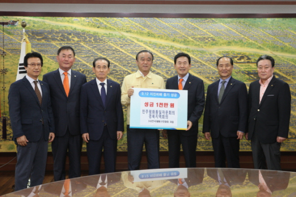 9.12 지진의 빠른 복구 등을 위해 민주평화통일자문회의 경북지역회의(부의장 한삼화)는 29일 경주시청을 방문해 성금 1천만 원을 전달했다.