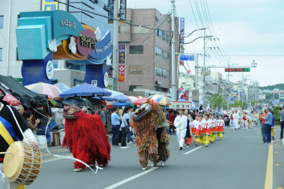 영천공설시장내 말죽거리에 마련된 사열대에서는 제5차 통신사 정사인 행명 윤순지선생의 후손인 윤성진 옹과 김영석 영천시장이 선물을 주고받는 모습을 재연하였고 조선통신사와 관련이 있는 13개 연고도시(서울, 충주, 문경, 상주, 안동, 칠곡, 대구, 경산, 군위, 청도, 경주, 울산, 부산)와 지역문화예술단체, 시민(봉사) 단체 공연단이 저마다 준비해온 공연을 멋지게 선보였으며 퍼레이드 행렬을 마친 뒤 행사장 마상재무대로 복귀하여 경연을 펼쳐 행사장에 계신 분들에게도 다양한 공연을 볼 수 있는 기회를 제공하였다. 조선통신사 행렬 및 시민퍼레이드 모습을 본 시민들은 모두 하나같이 입을 다물지 못하고 함성을 지르며 박수치기에 바빴다.