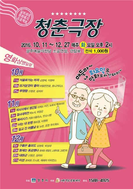 중장년층에게 많은 사랑을 받고 있는 경주예술의전당의 실버명화극장이 올해부터 청춘극장으로 새롭게 태어났다.