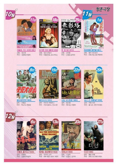 우리에게 익숙했던 실버명화극장에서 청춘극장으로 그 이름은 바뀌었지만 추억의 영화들과 함께 관람객들에게 청춘의 추억을 되살리고 삶에 활기를 불어 넣어 주는 역할에는 변함이 없었다. 상반기 상영에 지난해 못지않은 많은 관객들이 극장을 찾아 이름이 바뀌어도 경주예술의전당의 인기 프로그램임을 다시 한번 입증했다.