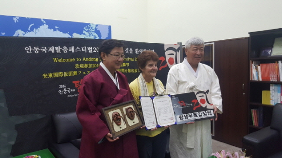 축제 명예홍보 대사로 위촉된 조엔 씨는 위촉장과 함께 앞으로 탈춤축제 평생 무료입장권을 선물 받았다. 안동축제관광재단은 앞으로 매년 축제 홍보대사(기관 또는 단체)를 선정해 축제가 글로벌화 되는데 적극적으로 활용할 것이라고 밝혔다. |