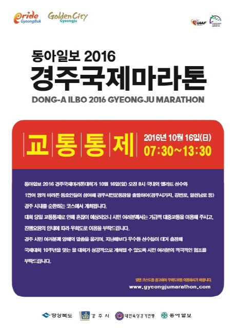 24년의 역사와 전통을 자랑하는 ‘동아일보 2016 경주국제마라톤대회’가 8,000여명의 국내․외 선수가 참여한 가운데 16일 오전 8시 경주시내 일원에서 열린다.