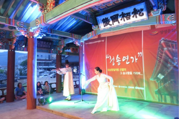 (재)청송문화관광재단은 오는 20일 목요일 오후 6시 30분부터 청송읍 소헌공원 내 찬경루(경북유형문화재 제183호)에서 “제7회 청송연가靑松戀歌” 문화예술공연을 시행한다고 밝혔다.