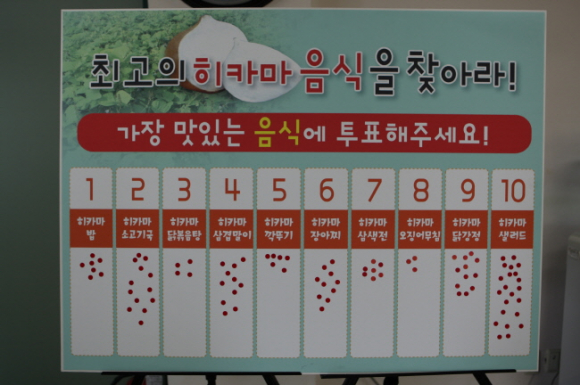 이날 평가회는 상주시 우리음식연구회(회장 조상희) 회원들과 함께 개발한 히카마 음식(히카마 밥, 히카마 소고기국, 히카마 닭볶음탕, 히카마 삼겹말이, 히카마 깍두기, 히카마 장아찌, 히카마 삼색전, 히카마 오징어무침, 히카마 만두, 히카마 샐러드, 히카마 닭강정 등) 10여 종을 상차림 전시, 시식한 후 선호도 조사와 설문을 진행하였고, 개발음식의 평가와 개선방향에 대한 의견을 청취하여 히카마가 새로운 식재료로 자리매김 할 수 있는 자리가 되었다.